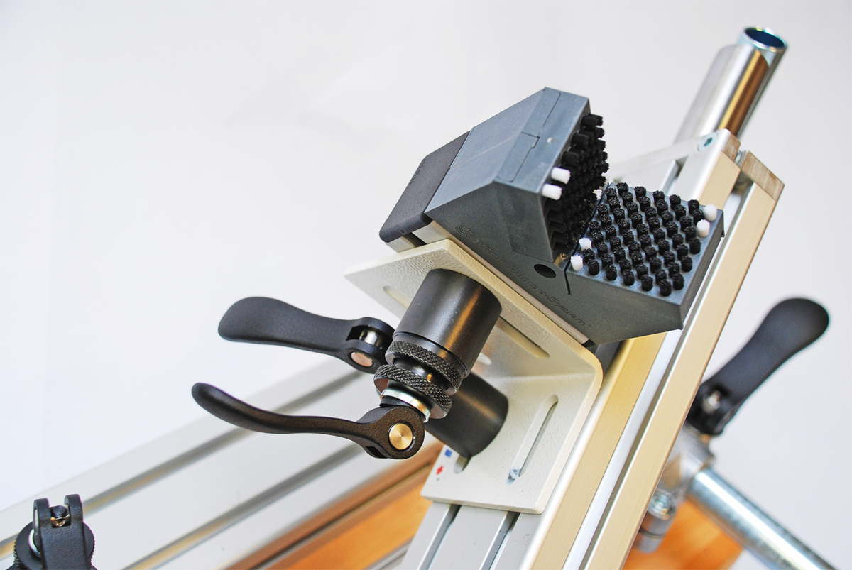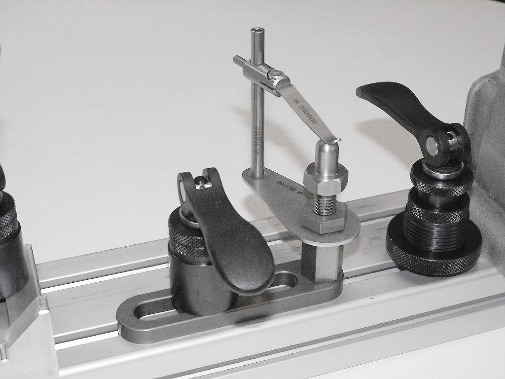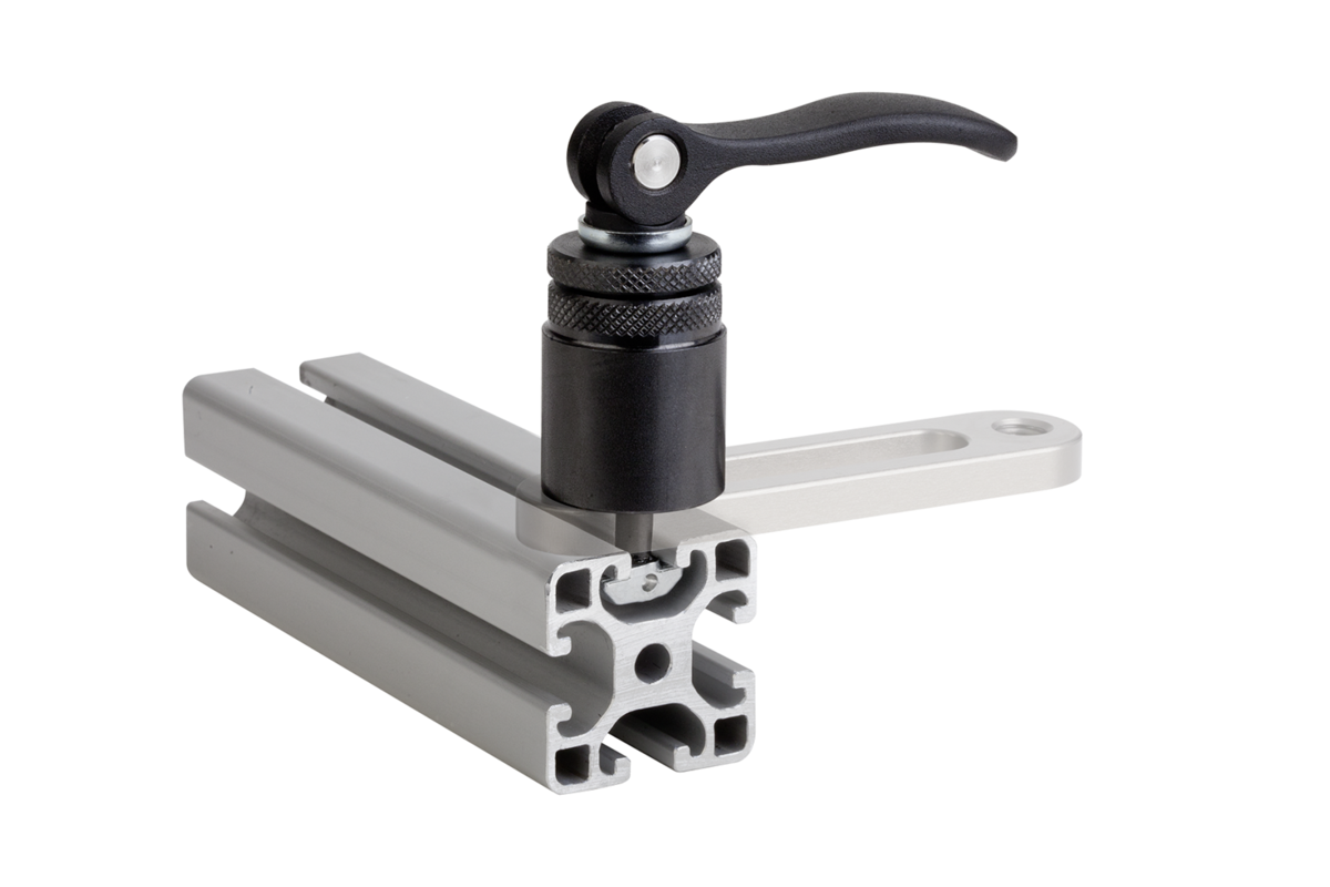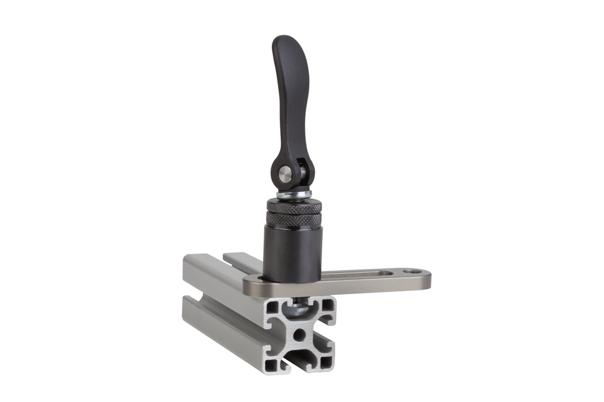 Das Spannmodul wird von oben in die T-Nut eingesetzt und sicher, ohne zusätzliches Werkzeug, über den Exzenterhebel festgespannt.