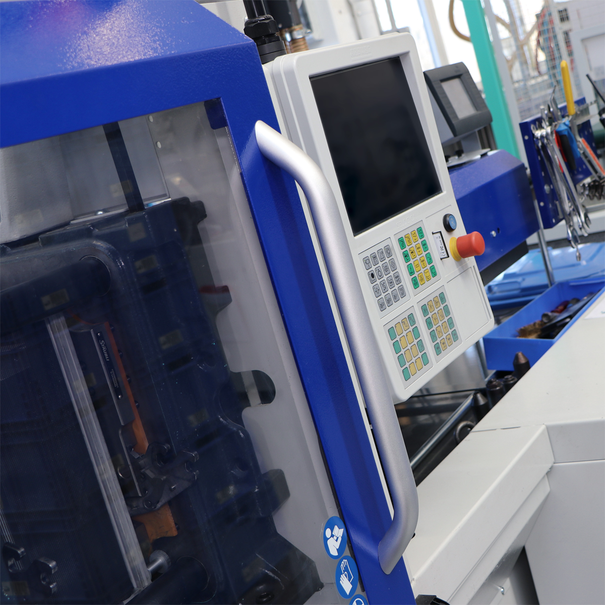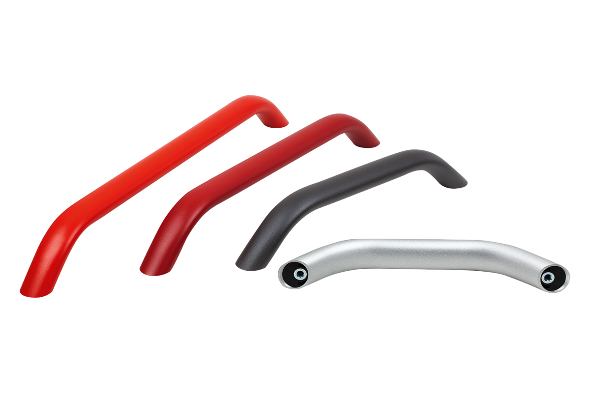 Der Maschinengriff überzeugt durch eine Kombination aus massiver Optik, hoher Stabilität und extremer Leichtigkeit. Das patentierte Befestigungssystem ermöglicht eine Montage von der Rückseite – auf der Vorderseite sind keine Schrauben sichtbar. Mit seiner gut zu reinigenden und abriebfesten Oberfläche passt sich der Griff zudem optimal an die Umgebung an.