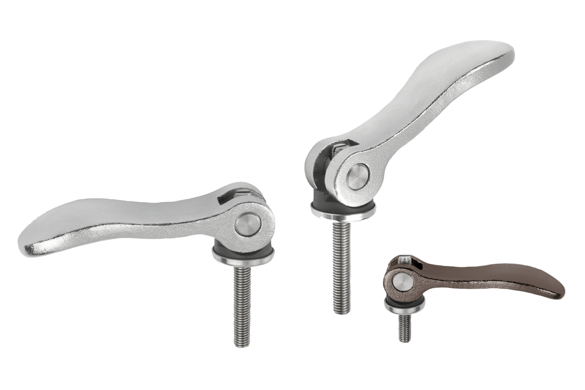 Adjustable cam levers are used if the position of the lever relative to the axis of tension only permits one specific position (interference circle). The exact position of the lever is adjusted using a screwdriver on the fine thread setscrew.