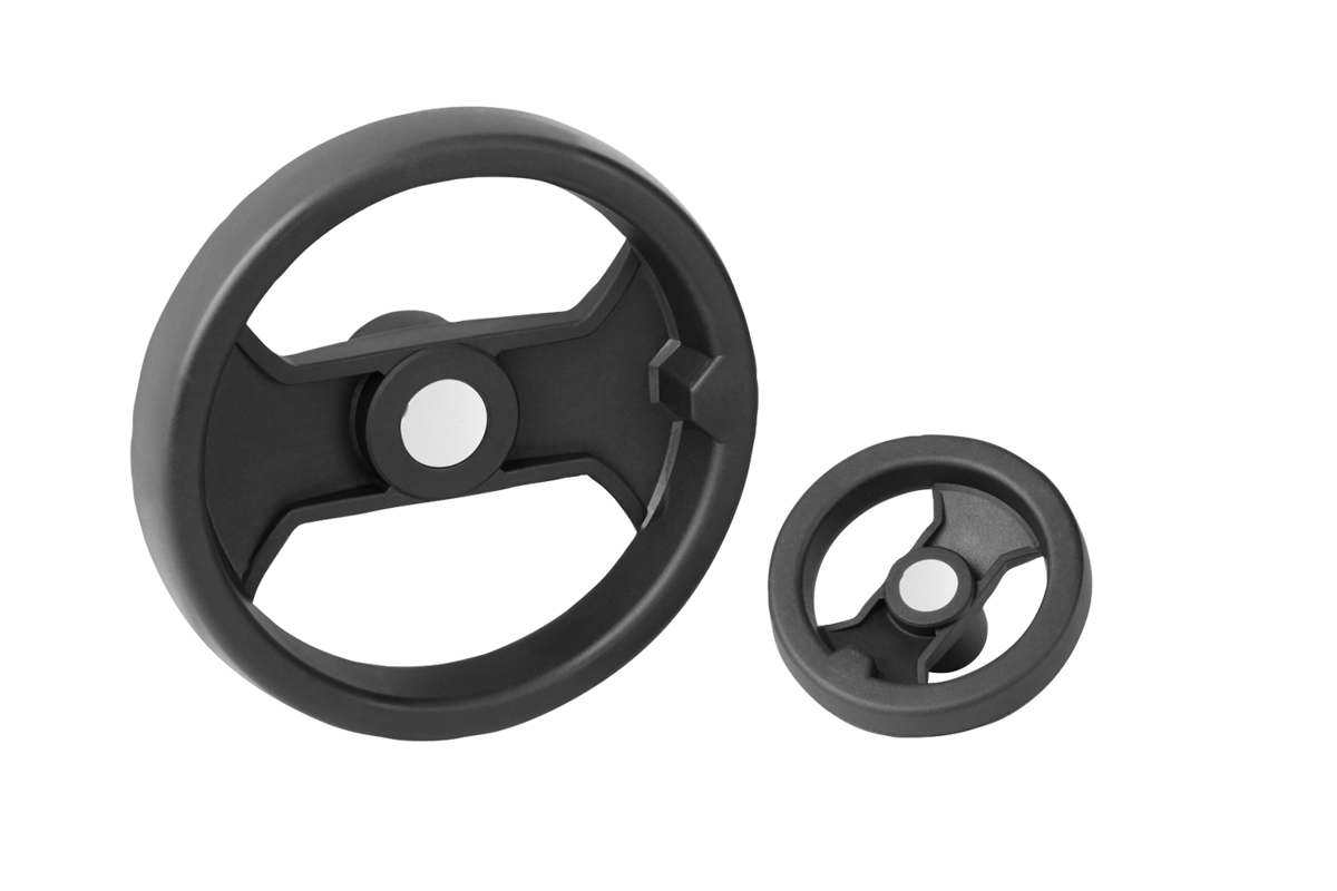 Handwheel, oil and grease resistant, black (RAL 9011), satin finish.