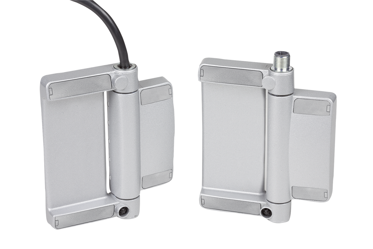 The security hinge switches are used for monitoring the position of swing-hinged safety doors, protective hatches and hoods. The protective device is monitored directly in the hinge.