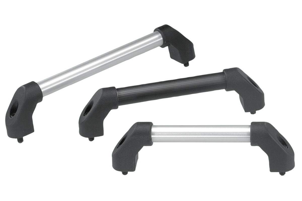 I supporti laterali delle maniglie presentano 4 linguette in corrispondenza dell'attacco del tubo. Durante l'inserimento a pressione del tubo di collegamento, queste linguette si ‘spezzano' e garantiscono un posizionamento perfetto. Le viti di fissaggio nere galvanizzate sono fornite in dotazione, complete di rondelle e dadi compatibili.