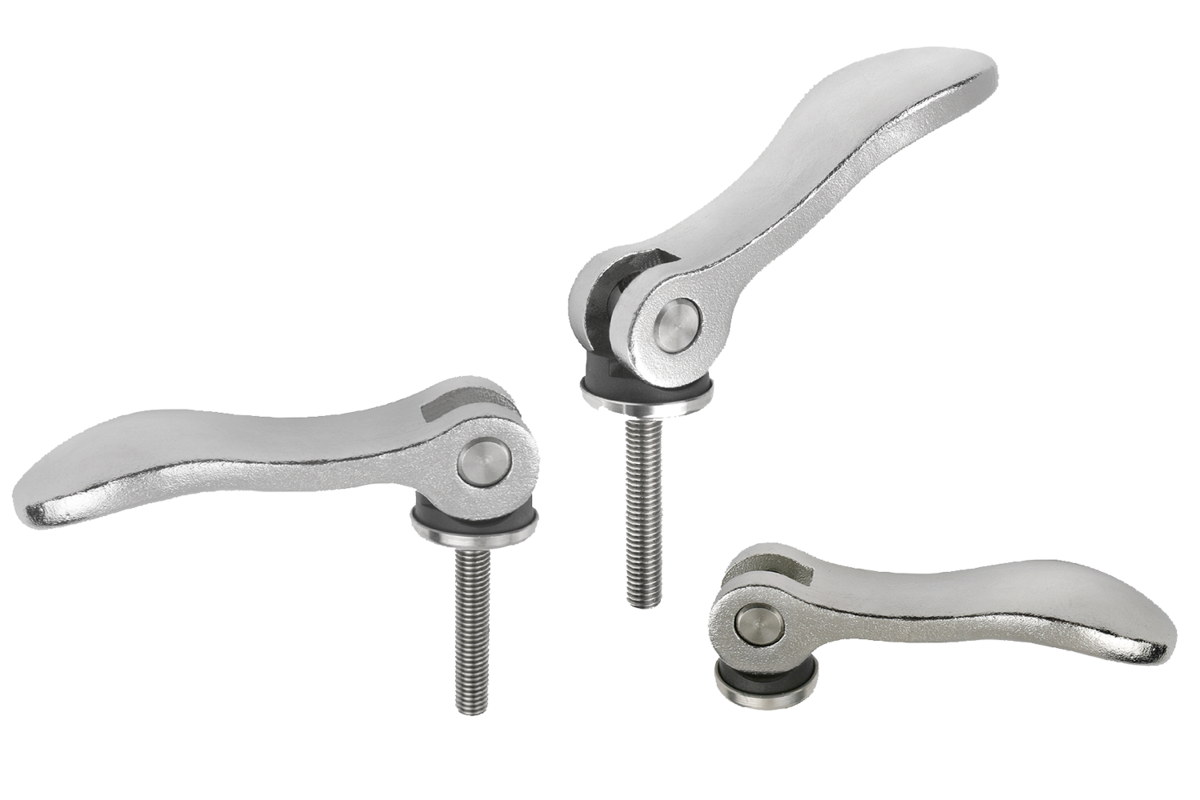 Leva eccentrica in acciaio con filettatura esterna, rondella di pressione in plastica-metallo e vite prigioniera in acciaio