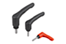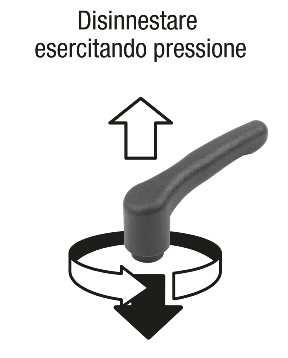 Allo stato non azionato, la leva della maniglia è agganciata tramite una corona dentata, in modo che la filettatura possa essere fissata o allentata. Premendo la leva della maniglia, è possibile spostarla in posizione e reinserirla nella corona dentata grazie alla forza della molla.