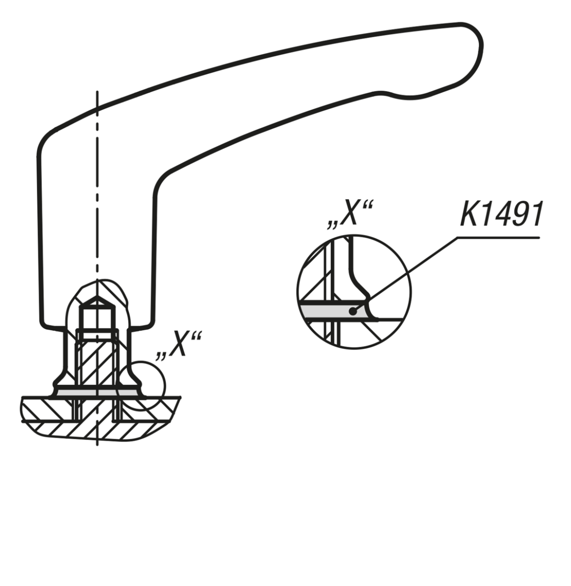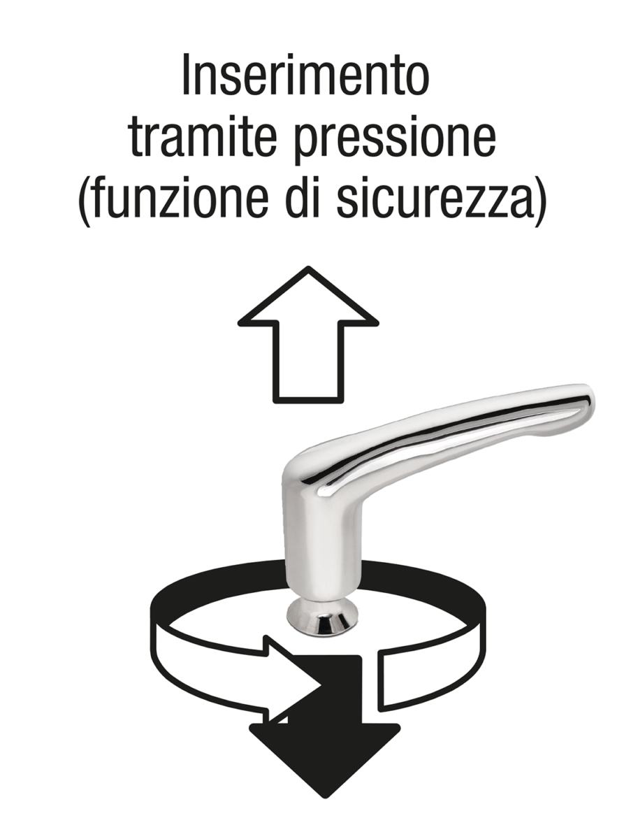 In posizione di riposo, la leva può essere ruotata liberamente. L'apertura involontaria della leva è esclusa. In caso di montaggio su componenti vibranti, la dentatura è protetta da un'usura eccessiva.