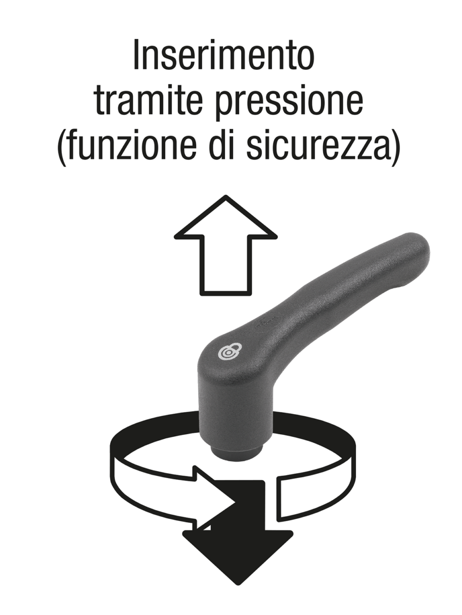 Le maniglie a leva con funzione di sicurezza impediscono modifiche al punto di serraggio dovute ad apertura o chiusura involontaria.