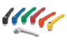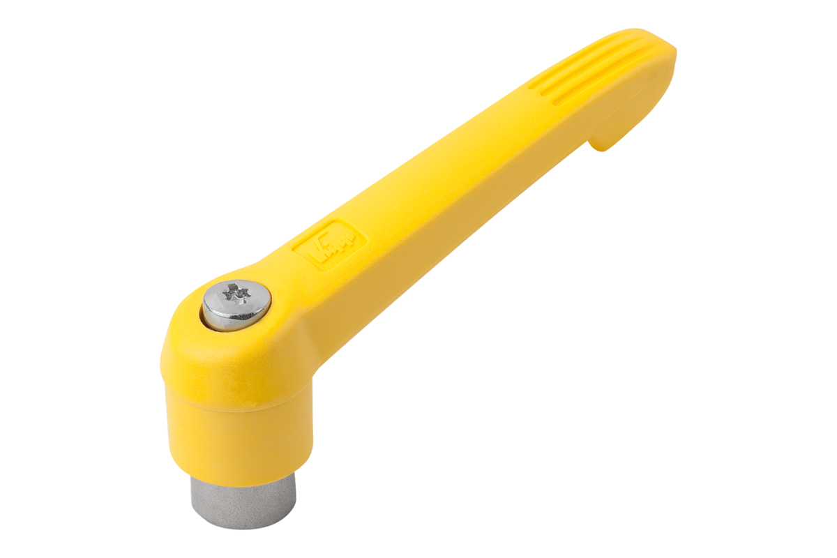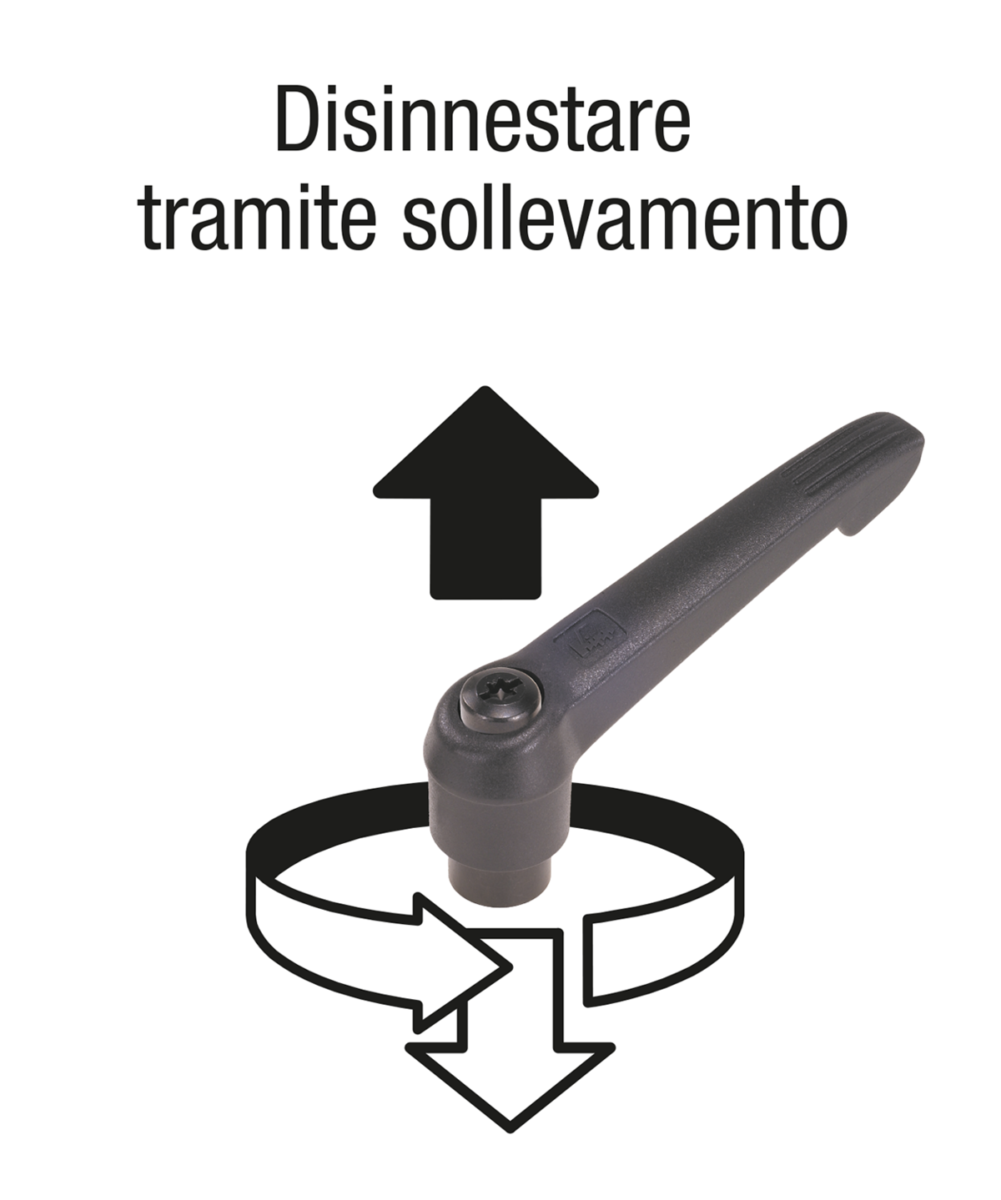 Impugnatura in plastica rinforzata con fibra di vetro con ghiera dentata in zinco pressofuso.