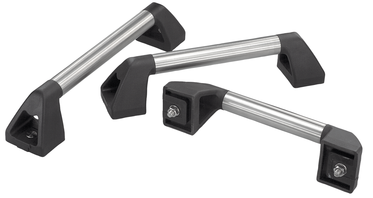 Maniglie tubolari in acciaio inox con supporti laterali in plastica, con inserto filettato