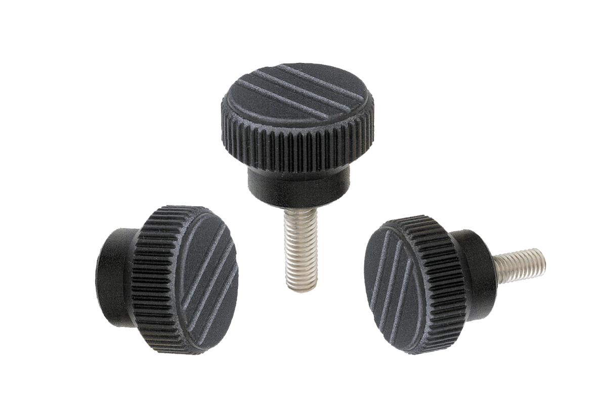 Impugnatura in resina termoplastica, colore grigio nerastro.