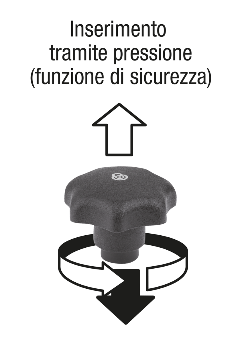 I pomelli a lobi con funzione di sicurezza impediscono modifiche al punto di serraggio dovute ad apertura o chiusura involontaria.