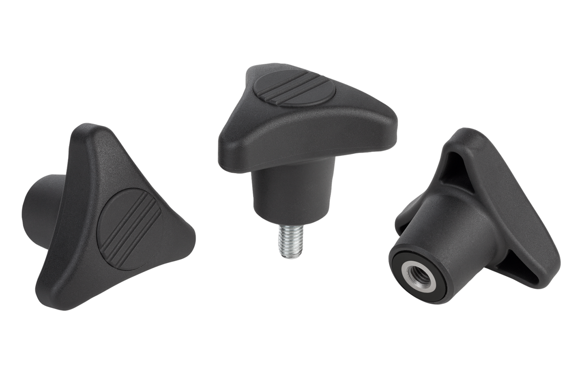 Pomello a tre lobi, filettatura esterna