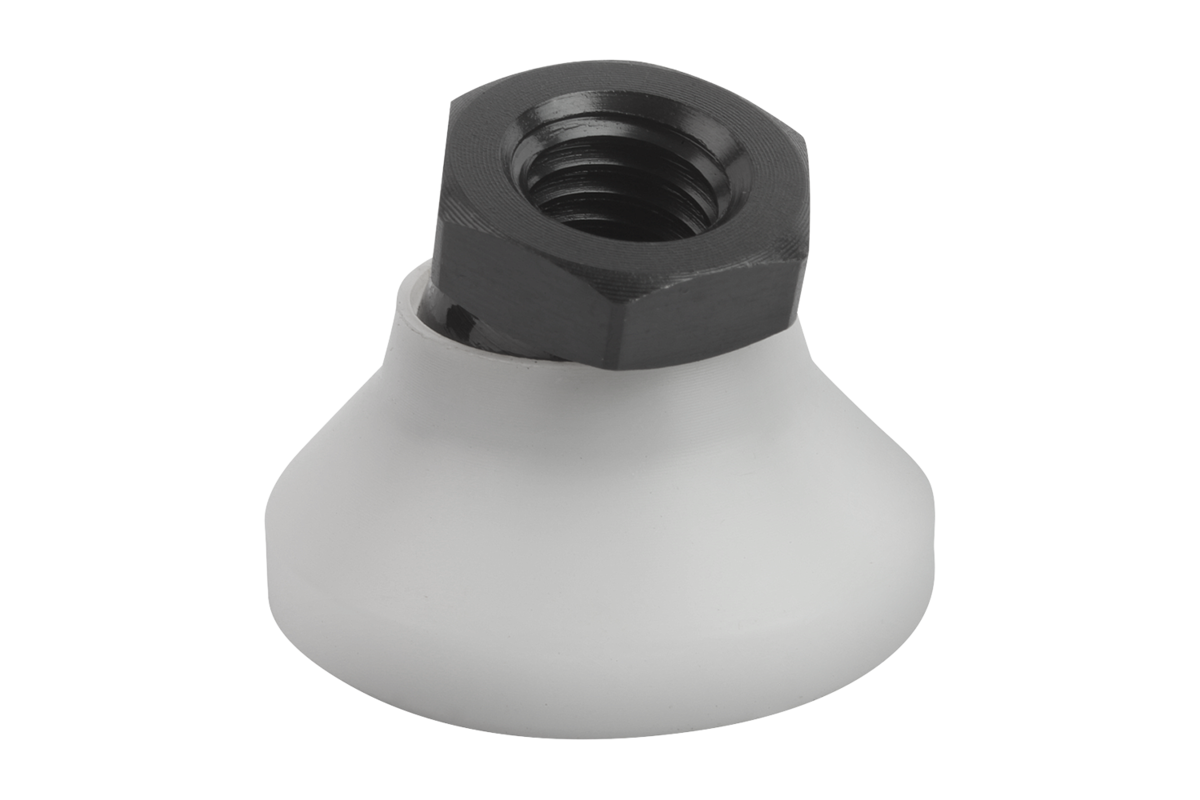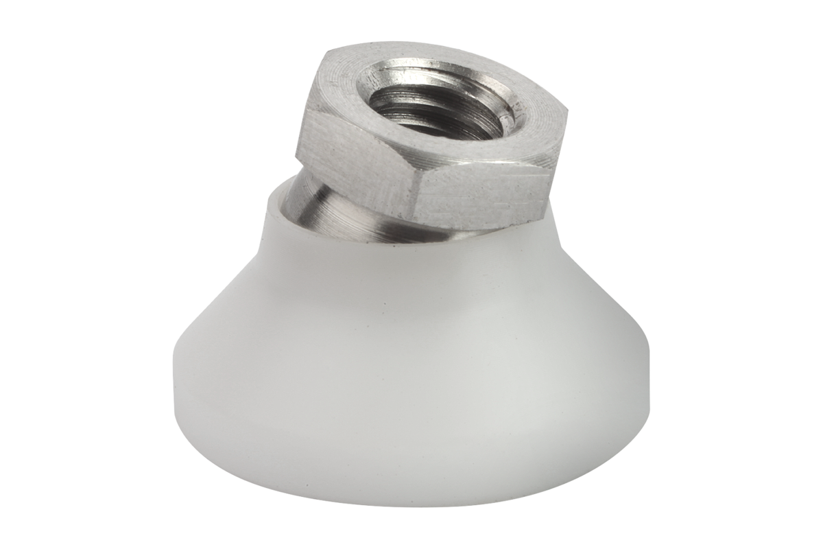 Forma D: piedino in POM, elemento sferico in acciaio inox, finitura naturale.
