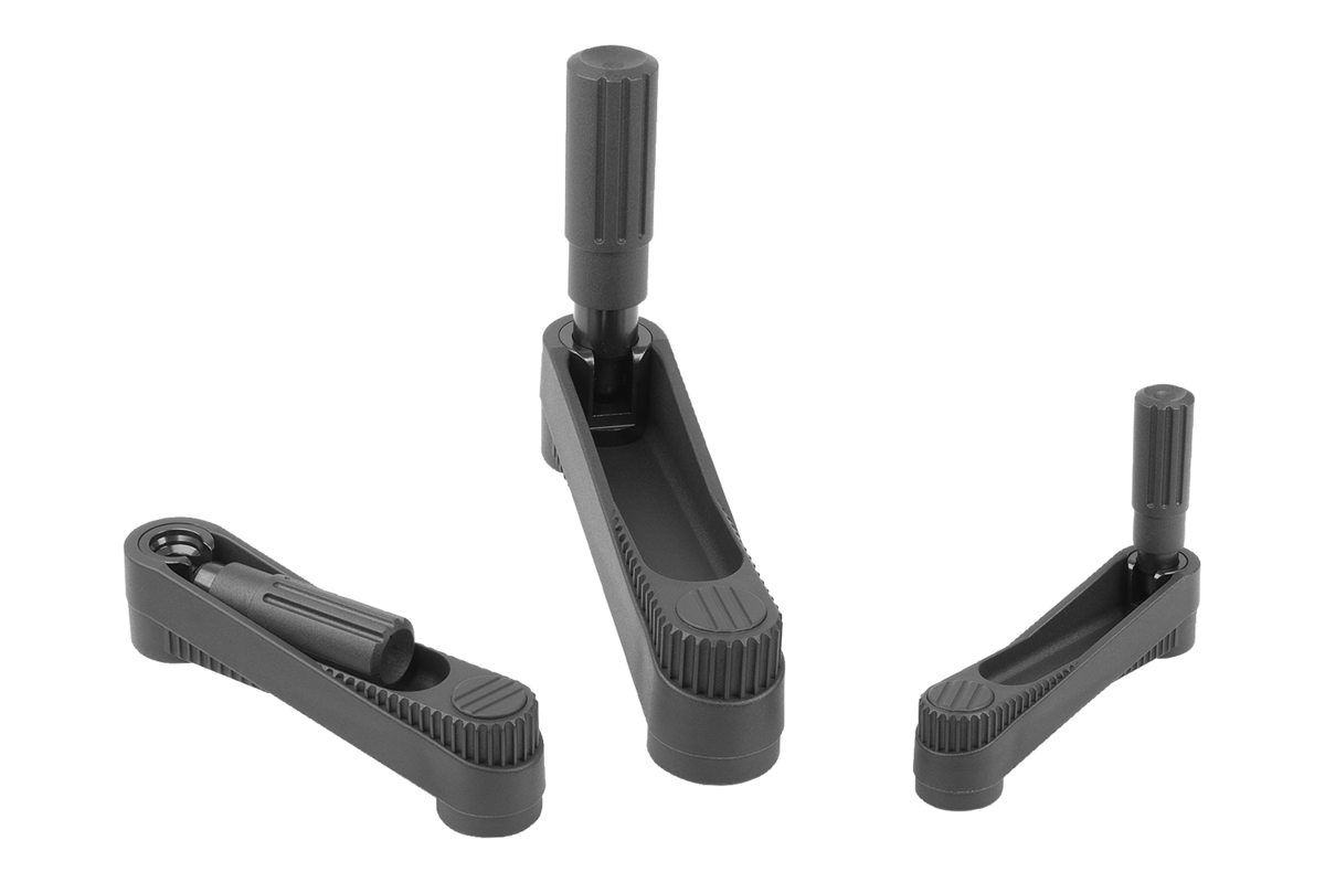 Manovelle con impugnatura cilindrica pieghevole, foro calibrato con cava